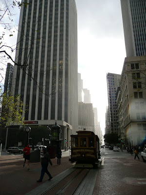 So you can't really see it in this picture (aside from the drops on the camera lens) but it was a sunny day, and all of a sudden it started raining, and pretty hard too! At the very least you get a shot of a pretty cable car.San Francisco, CA